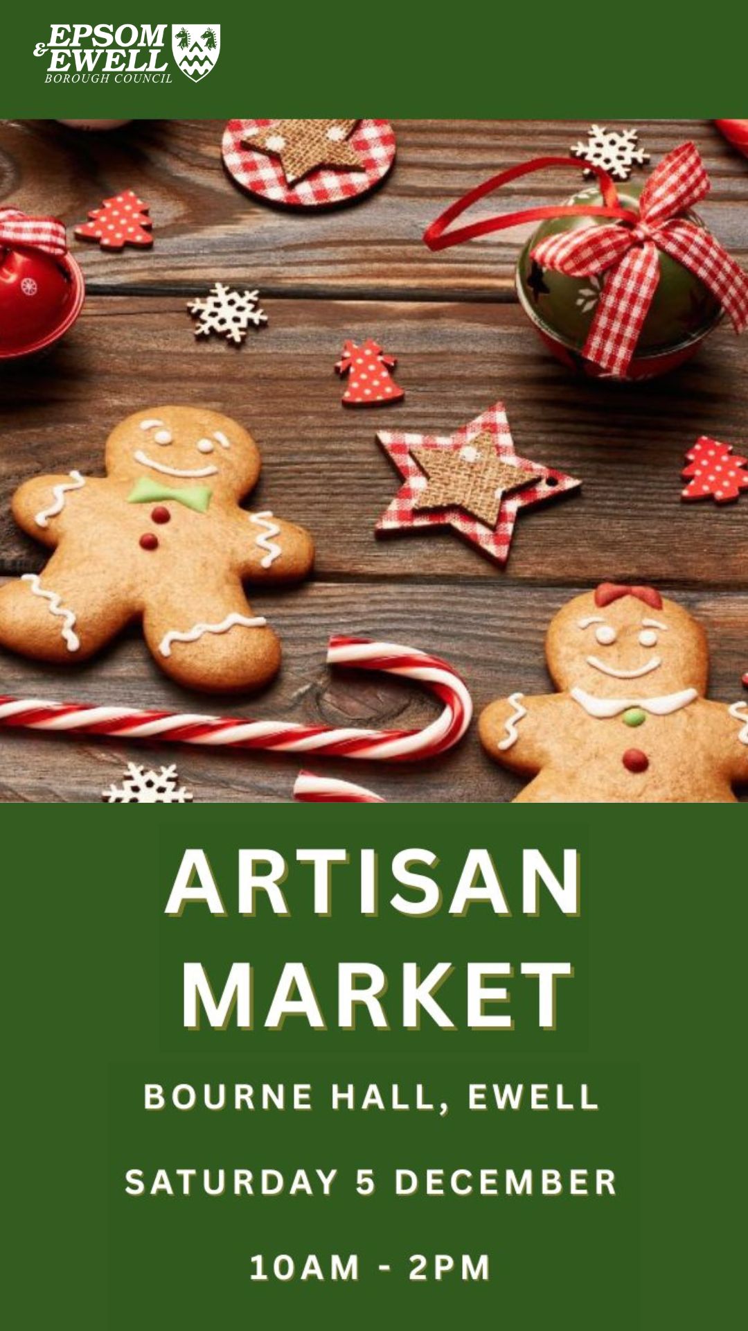 You’re Invited to Our Christmas Artisan Market! Get into the festive spirit at our Christmas Artisan Market, featuring a lovely range of seasonal gifts, handcrafted items, and local makers — perfect for some early Christmas shopping.Bourne Hall, Spring Street, Ewell, KT17 1UFSaturday 5 December10:00am – 2:00pmFree entryParking availableCafé on siteSet in beautiful groundsBring friends and family along and enjoy a relaxed festive day out in a wonderful setting.We look forward to welcoming you this Christmas!