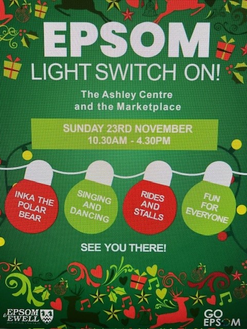 It’s that time of year again – Christmas is coming to Epsom! This year Epsom & Ewell Borough Council are working in partnership with Go Epsom .Come along on Sunday 23 November as the Christmas lights in Epsom marketplace are switched on by the Mayor of Epsom & Ewell and cast of this year’s pantomime at The Playhouse, Aladdin. Enjoy a day of festive cheer. The fun starts at 10.30am. In the Ashley Centre Epsom there are performances from local dance schools, a local community choir, entertainers and a special visit from Inka the Polar Bear.On Epsom Market Place there will be family-friendly rides, charity and seasonal stalls as well as a variety of food stalls.The Christmas lights in Epsom marketplace will be switched on at 4.30pm and the Fun Fair and stalls will run on into the evening.