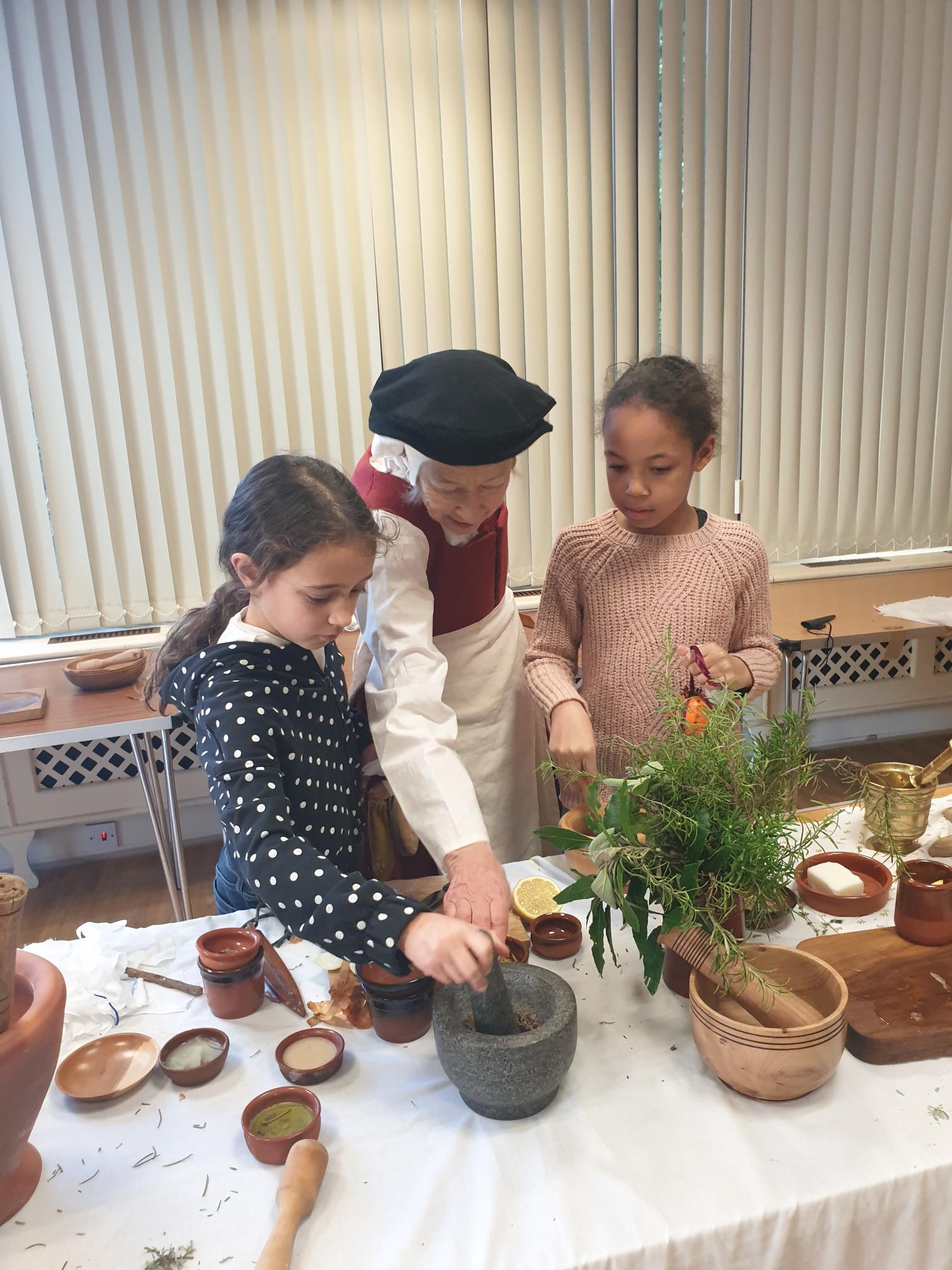 Discover life in a Tudor Pharmacy and keep off the moths by making a muslin sweet bag with ingredients pounded in a pestle and mortar.